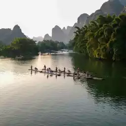 Nothing beats sunset along the Yulong River. As the last light drops behind those iconic limestone mountains, the whole valley glows — bamboo rafts drifting by, farmers heading home, silhouettes of peaks stacked like a painting. I found myself stopping every few meters thinking this must be the best spot… and somehow the next view was even better.
