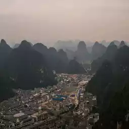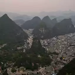 There’s nothing quite like seeing Yangshuo from above — the endless sea of karst peaks stretching into the horizon feels almost otherworldly. From up high, the Li River snakes like a silver ribbon through the valleys, while tiny bamboo rafts drift below.