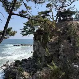 the blue East Sea spread out below the cliff was a spectacular sight.