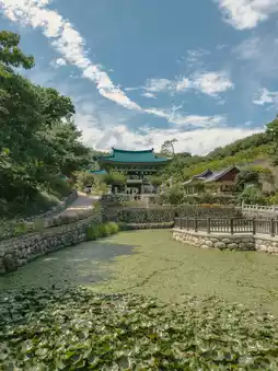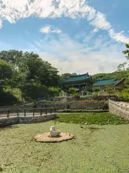 This temple sits alongside the blue East Sea,