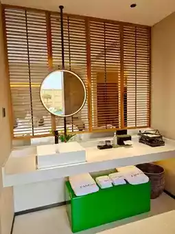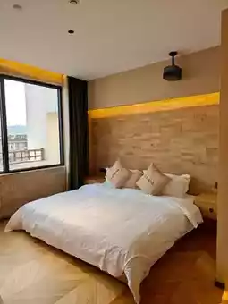 The private hot spring in the room is also amazing. After a long day, soaking in the hot spring opens up all your pores and washes away the day's fatigue. The room is also well-equipped, with a high-definition projector, smart toilet, and super comfortable bed. Every detail is so thoughtful.