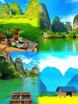 The landscape of the Li River is the best in the world, and rafting on a bamboo raft is like walking through a picture scroll. The neon lights and ancient charm of West Street are intertwined, and a night tour is especially charming. The Yulong River is quiet and peaceful, and cycling or boating is a poetic journey.