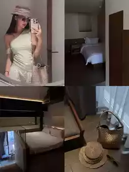 The lobby has clothes from a partnered brand for trying on and photos 📷.