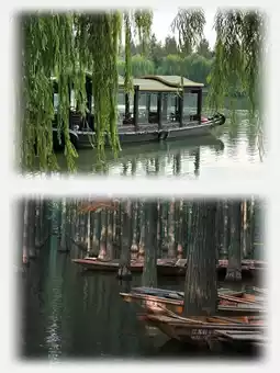 🌿【Lüyang Lake】A green gem in the city of Yangzhou, with weeping willows along the shore and rippling emerald waters. The "Lüyang Chun" teahouse on the island in the lake offers a taste of Yangzhou morning tea. Ancient trees and modern art installations by the lakeside create a tranquil urban oasis.