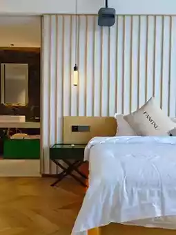 🏠The homestay is full of design flair, stepping inside feels like entering a hidden paradise. The room features a full smart home system and a large projector—perfect for cozy movie nights in bed🎬