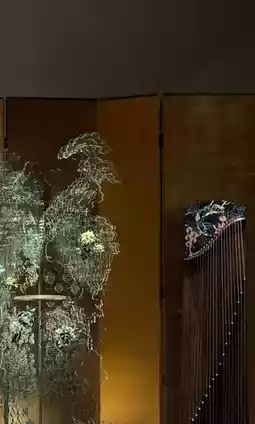 I love coming in the evening, watching the sunset shine through the carved windows onto the art installations, bathing the whole space in a warm glow. Every photo I take looks like a masterpiece, no filters needed! The combination of the new zither and floral art is especially poetic, showing the curator’s thoughtful intention.