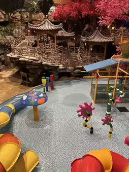 The indoor area is like a tropical rainforest, and there is also a water park for children.