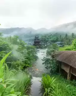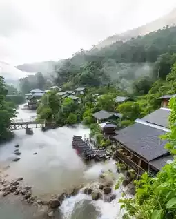 Gexian Village Resort is backed by the millennium-old Taoist sacred mountain Gexianshan. It integrates the core of Chinese Taoist culture and classical landscape painting, using water, bamboo, and village as creative elements to create a natural sanctuary of "water in the mountains, village in the water." The terrain is surrounded by mountains on three sides, forming a canyon basin. The probability of advection fog on rainy days is very high, with mountain mists often lingering around, full of ethereal charm.