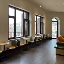 ✔The cafe had two floors and the view outside the window was so pretty!! In addition, the store itself was clean and spacious, and there were a lot of seats, which was nice, and the chairs were really comfortable, which was even better🛋️