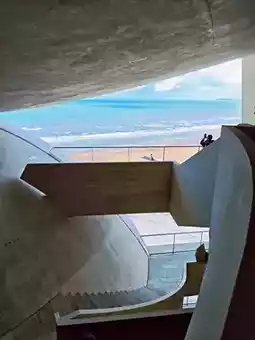 After taking photos of the whale fall, don't rush off, because just a few minutes' walk away is the Time Tower! The design of this tower is super modern, and there's even a beautiful library inside! Walking in, it feels like you've traveled to another time and space, quiet and comfortable, a great place for both photography and reading!