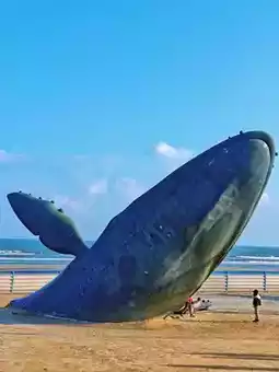 I arrived at the Lonely Whale at around 8 am, and there were already quite a few people waiting in line to take photos! But honestly, when there are fewer people, this whale fall installation art is quite impressive! It just lies quietly on the beach, as if it came out of a comic book, and you can take stunning photos from every angle!