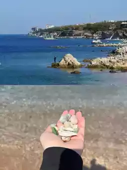 The sand is fine and the water is clear. You can enjoy the sunshine and beach here. There are also some water activities such as swimming and playing in the sand.