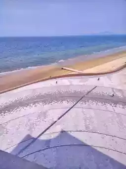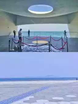 Despite the biting wind in Yantai these days, people's enthusiasm for the seaside remains undimmed, not to mention the award-winning, popular Time Tower standing quietly by the sea, waiting to be explored. If you visit on the spring equinox, March 20th, the tower's shadow should fall precisely on the blue-black line north of the square (see the second image).