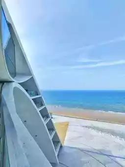 Designed by OPEN Architecture, the Time Tower is located on the shore of Golden Sand Beach in the Yantai Development Zone, Shandong Province. It's a multifunctional public cultural building, featuring an outdoor theater, a sky library, a digital exhibition hall, a cafe, and other leisure facilities. At the top, there's a unique semi-outdoor "phenomenon space."