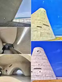 The Time Tower's geometric form is derived from the sun's trajectory. The tangible architecture transforms intangible energies—breath, light, sound, and seaside natural phenomena—into experiences perceptible to the human body. It's a "lighthouse of the soul" that pays homage to time and nature.