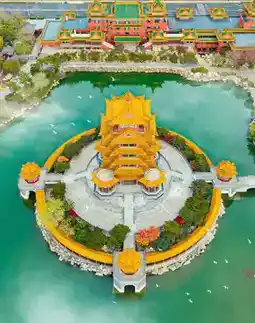 A real-life "palace on the sea" that looks like a treasure gourd from above