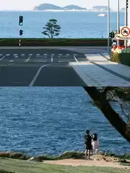 Stop on the red plank road and overlook the jelly sea from a close distance