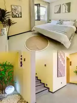 Cobblestone paths wind through white walls draped with roses, while 270° floor-to-ceiling windows frame the shimmering waves of the Yellow Sea. Wake up to seagulls skimming the gold-flecked waters at dawn, and as dusk falls, watch fishing boats trace gentle arcs along the horizon. Each room is named after stars or tides, adorned with handwoven rattan lamps and seashell decor, where island vibes flow effortlessly through every detail.