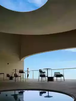 📍 Housha Square: A glass plank bridge extending over the sea, even more beautiful at sunset.