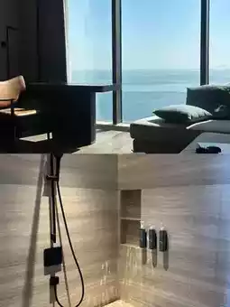 🏘️ Room Types/Layout: The hotel’s design is ingenious, crafted by the renowned CCD, with a construction cost of 1 billion RMB, showcasing extraordinary style in every detail. The executive suite covers 110 square meters, with a reasonable and grand layout. Upon entering, the bamboo leaf-shaped lighting catches your eye, and the crystal ornament at the entrance adds an elegant touch. The living room is spacious and bright; although large, the decoration and furniture are of excellent quality. The bedroom faces the sea, and lying in bed with the curtains drawn back, you can take in the stunning ocean view. The bathroom features a semi-open design, with bamboo shadow elements in the shower and toilet areas, creating a unique atmosphere that makes you feel as if you are in a serene bamboo forest.