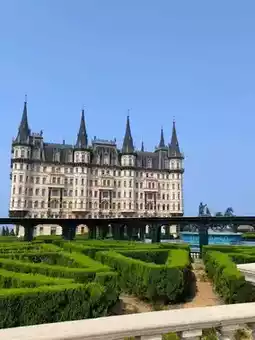 Wencheng Castle, with its European-style architecture, features a maze garden and fountains outside, making it a popular optional activity for tour groups. In addition to admiring its European-style buildings, visitors can explore its underground wine cellar, which stores wines, brandy, and whiskey. For those interested, there are also options to purchase these beverages.
