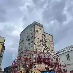 I saw a crowd of people gathered in front of the hotel and it was street food!