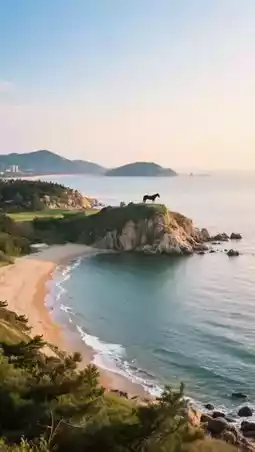 ● Morning: Visit Moon Bay, also called “Crescent Bay,” one of Yantai’s most romantic spots. There’s a statue of the Moon Elder here, where many couples come to make wishes. Take a walk along the shore, collect seashells, and enjoy the sea’s tranquility and gentleness🌊.