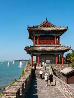 Highlights: One of China’s Four Great Towers, legendary site of the Eight Immortals Crossing the Sea, where you can see the “mirage” phenomenon (mostly in summer). Elderly can take the electric cart (20 RMB/person) to the main pavilion and listen to the Eight Immortals’ stories; children can watch ancient warships in the “Water City” and climb the pavilion to view the boundary between the Yellow Sea and Bohai Sea.