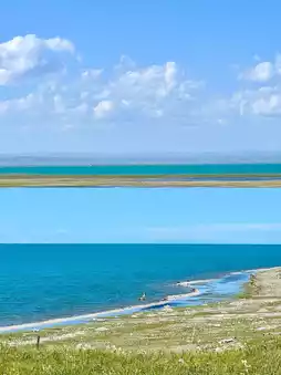 After arriving at the peninsula, there were activities like yak riding and ATV rides. If you want to ride a yak for photos, it’s better to walk further in, where the price drops from 30 yuan to 10 yuan. The peninsula is very large, with soft sand that makes walking tiring. The scenery is quite similar throughout, so no need to walk the entire area—go as far as you can. For the return trip, we chose a small train, but the scenery was average; it would have been better to take the bus back hahaha (photos 1-5).