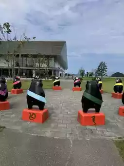 Additionally, there are 12 Kumamon figures forming a circle representing the zodiac animals. You can encounter various Kumamon figures with different sizes, expressions, and poses.