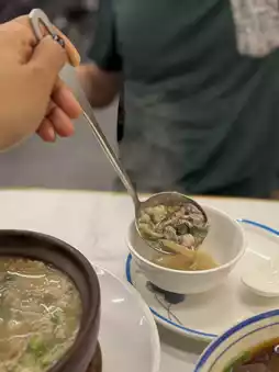 Add a pinch of pepper or fried garlic to add a spicy and stomach-warming feeling. The rice grains have absorbed the soup and are soft but not mushy, similar to soaked rice but richer.