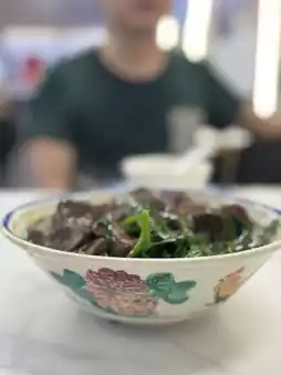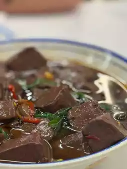 Leek and Pork Blood: Pork blood is as smooth and tender as tofu, with a faint metallic taste. After being cooked with sauce, it will absorb the salty and fresh taste of the soup to form a full-bodied base flavor. The unique spicy aroma of leeks can neutralize the fishy smell of pig blood, while providing a crisp taste and sweet aftertaste. The aroma is strongest when the leeks are fried until half-cooked. The pig blood is well processed, has no fishy smell, and is salty and spicy, very delicious.