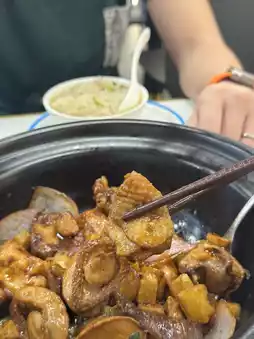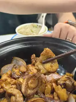 Zesty Abalone and Chicken Casserole: Baked in a high-temperature casserole, it has a fragrant aroma and rich flavor. Abalone has a chewy texture with a sweet taste of the ocean, and becomes even crispier after being cooked at high temperature. The marinated chicken pieces are tender and juicy, absorbing the salty flavor of the sauce.