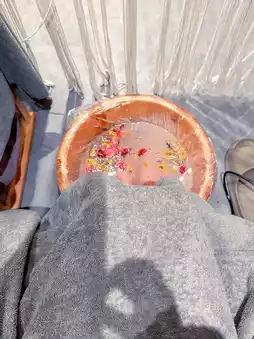 After the massage, go out to drink flower tea soak in the flower bath bucket, very Relax