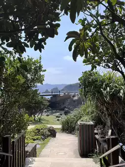 It is lined with strangely shaped rocks created by waves and wind over many years!