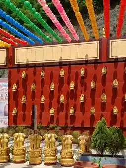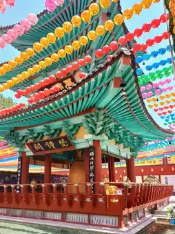The vibrant sculptures and lanterns behind the Buddha statues create an atmosphere reminiscent of a Buddhist art exhibition. True to the spirit of Buddha's Birthday, the temple hosts various events, and the cheerful expressions of visitors bring life to the entire place. It's a day filled with warmth and joy in a lively and special ambiance.