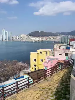 Strolling along the seaside boardwalk, we were surrounded by delicate pink blooms framing the sparkling East Sea—every turn felt like a scene from a K-drama! The salty breeze and sound of waves made the sakura petals dance even more beautifully against the rugged coastal cliffs. After soaking in the views, we stopped at Café MAIN,a stylish spot with floor-to-ceiling windows overlooking the water. Sipping a creamy latte while watching fishing boats drift by was the perfect way to end our hanami adventure. Less touristy than Haeundae but just as photogenic, this hidden gem is a must for sakura lovers who crave calm and caffeine!📸🌸