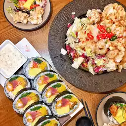 And you all thought it was Yurin-ki, right? But it was ponzu karaage! 🍗 The sauce was so delicious, and the fries were so crispy, I couldn't stop reaching for them. Paired with futomaki, it was a truly wonderful combination!