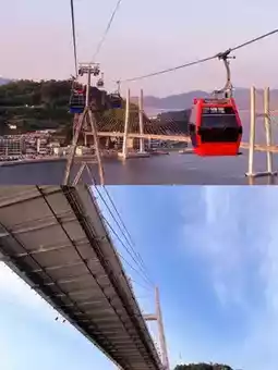 4. Zipline: Located on the top floor of the Ramada Hotel, the zipline allows groups of three to soar through the air, feeling the wind rush past as you take in panoramic views of Yeosu. The minimum weight requirement is 35 kg. A shuttle bus will take you back after the experience. It's both thrilling and fun.