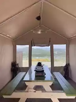 The outdoor barbecue area is just like a camping site