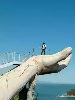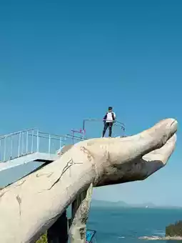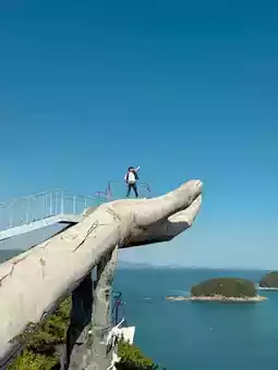 • Cliffside Drama: The sculpture’s location makes everything feel more intense—waves crashing, wind blowing, and that golden hand standing firm.