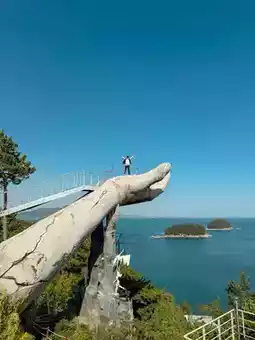 The Midas Hand is a massive, golden sculpture of a human hand rising powerfully from the sea—one of the most iconic and Instagram-famous landmarks in Yeosu. Inspired by King Midas of Greek mythology (who turned everything he touched into gold), this sculpture symbolizes ambition, power, and the fine line between blessing and curse.