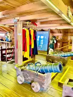 • The interior is connected by wooden stairs and passageways, so you can feel the structure of an actual battleship with your body and move around.