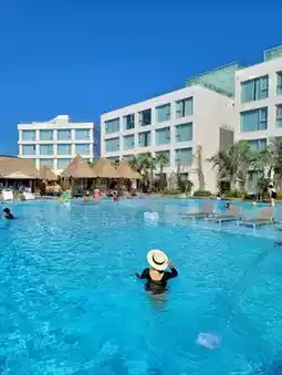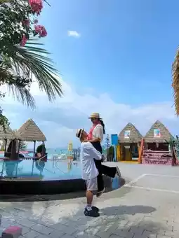 This place was truly photogenic, even down to the photo zones! If you enjoy taking pictures, you should definitely visit! 😉 The rooms and the pool were both beautiful, and I was so happy. The photo zones set up by the pool were the best! 💛