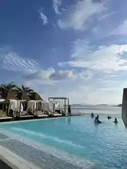 As expected, La Terrasse boasts Yeosu's top-tier outdoor pool 🏝. This was already my third visit, yet it remains as beautiful as ever. It's a perfect spot for taking photos and exudes a full vacation vibe, making this trip incredibly enjoyable 🩵. Although I couldn't catch a perfect sunset since it wasn't quite dusk, the infinity pool blending with the blue sea and sky was absolutely breathtaking! When it comes to water parks in Yeosu, La Terrasse is the ultimate choice 💙.
