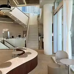The modern yet warm interior creates a relaxing atmosphere for visitors. The photo zones throughout the space are a great addition to any photo-lover's menu.