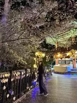 Walking along the park's paths, you'll find yourself surrounded by a pink cherry blossom tunnel, making you feel like you've stepped into a scene from a movie.