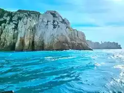 Sharp cliffs, as if honed by a blade, rise like spears tearing through the sky. An army of silence stands unyielding against the fierce waves.
