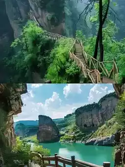 Laozi Peak is a relatively steep section of the plank road, with a total of 156 steps, feel the fun of climbing up the steps