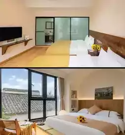 Upon arriving at the homestay, I felt like I had entered a paradise. It looked exactly like the pictures online, with no difference at all. The homestay's architecture preserves the local Huizhou style, blending local folk elements with modern design, creating a charming and tasteful atmosphere. My mood immediately lifted.